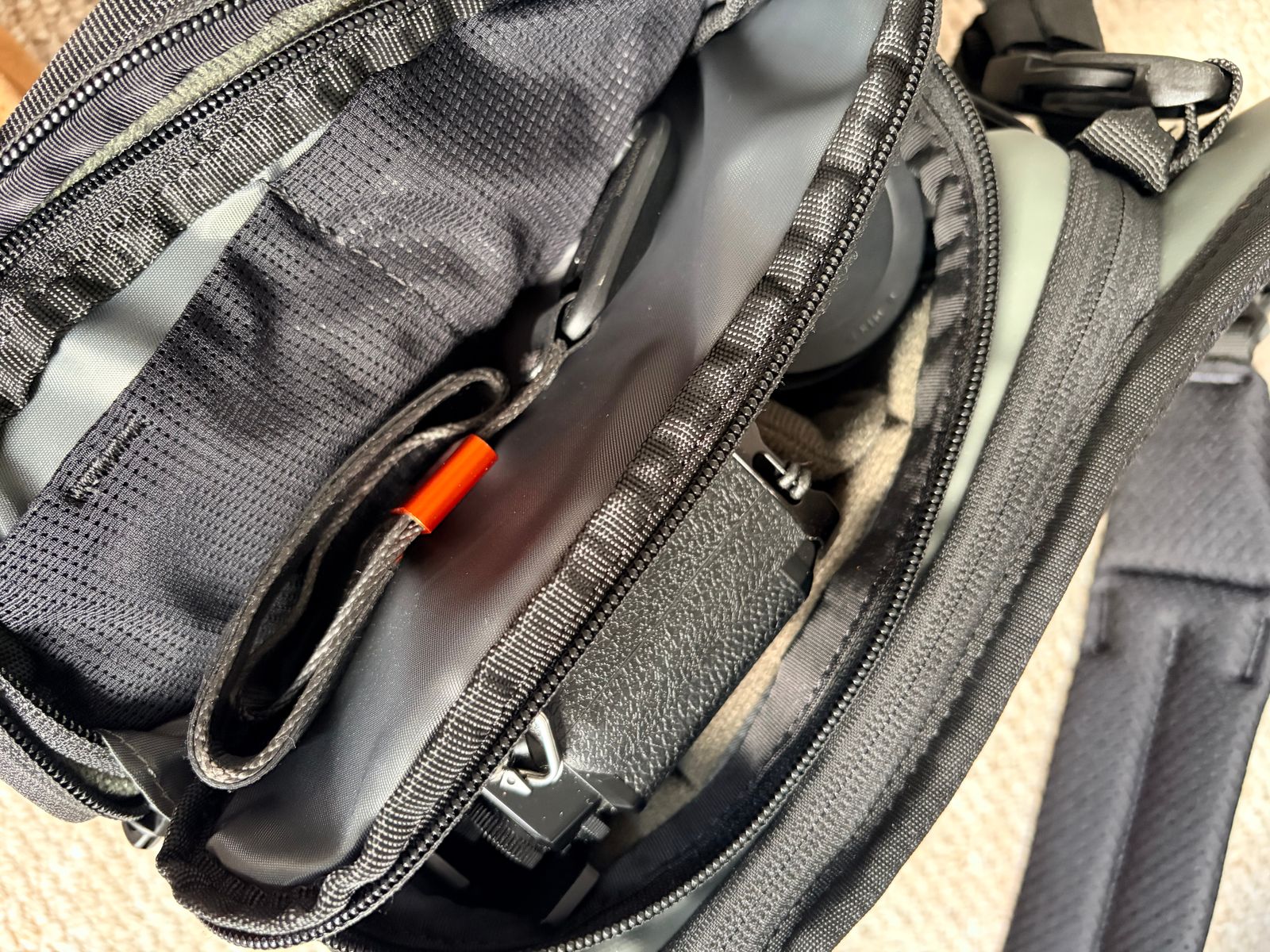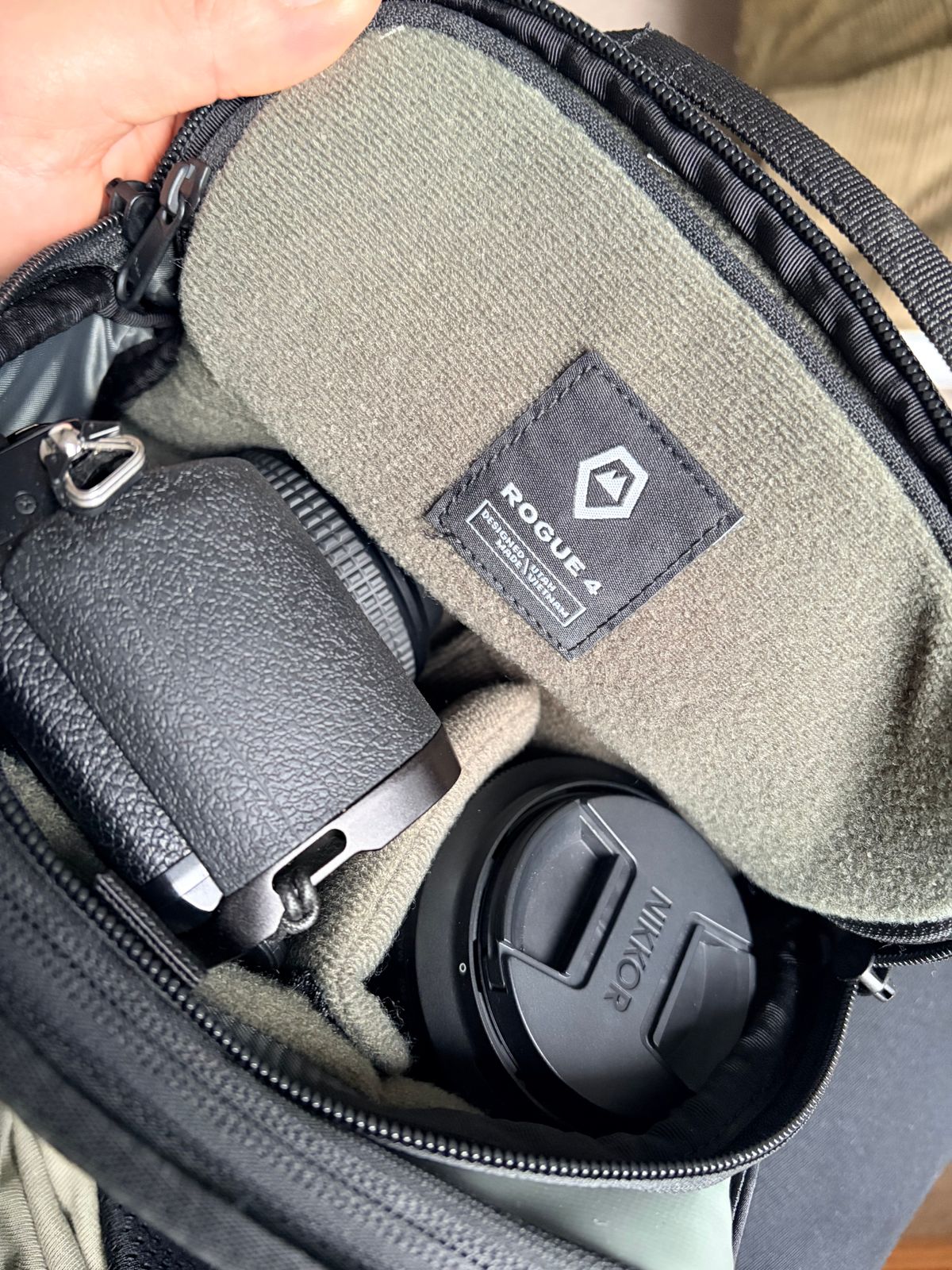 I can fit the ZF with small rig grip, 40mm f2 attached and the 35mm 1.4 next to it. I probably won’t carry both lenses together but they do both fit.