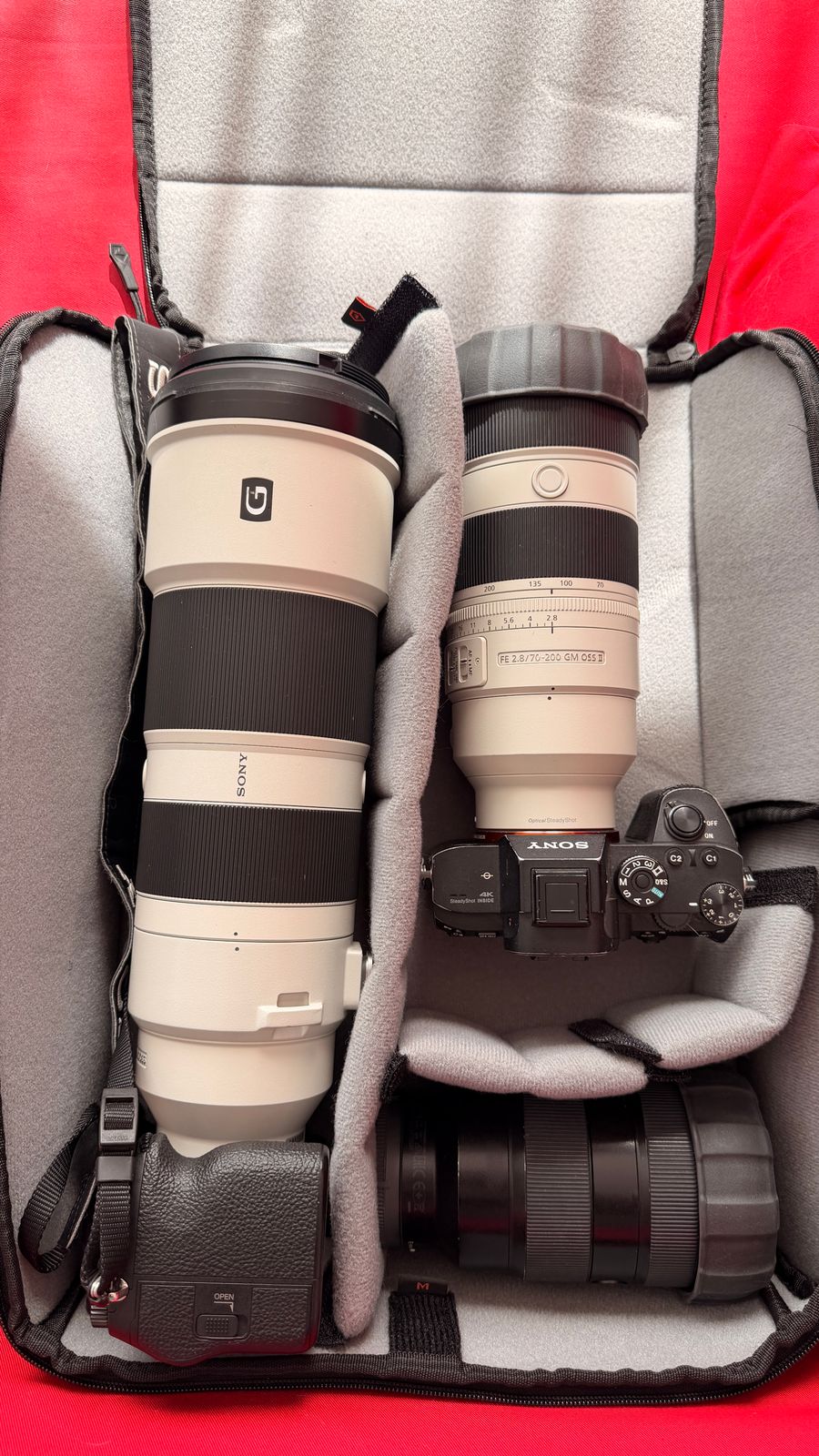 I was looking for a cube in which I can fit in my 200-600mm lens, together with 2 bodies and my 24-70mm and 70-200mm lenses. If possible, bodies attached to 2 of the lenses. Here it is, I found the solution and I’m happy I can now protect my gear without adding too much extra weight to my backpack which is essential. Maybe not the perfect arrangement, but this was my first try.