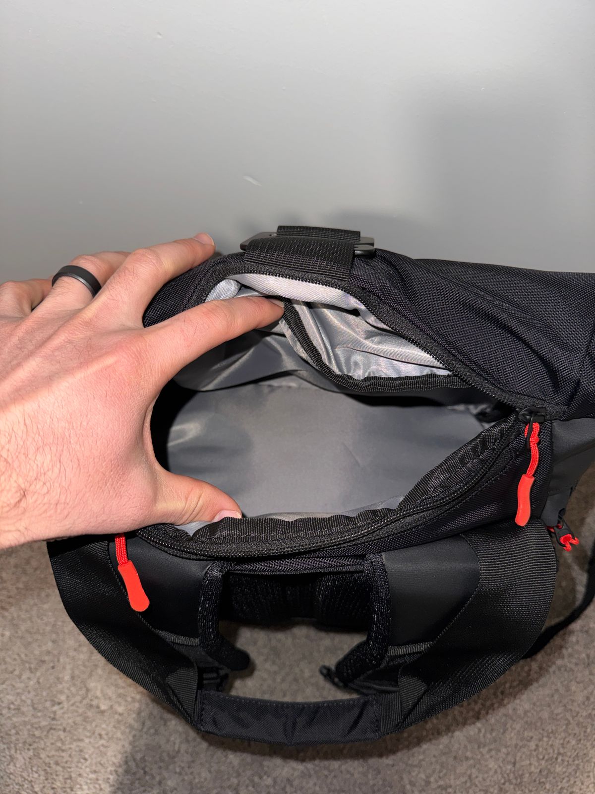 The upgrades from previous gens of the PRVKE is what drove me to finally buy the bag again, and I love having it in black with the red accents. It's my favorite look! The meaningful upgrades make this bag an absolute delight. It's more comfortable, especially with the new strap design (being hooked to the main bag and not the back panel). The new zipper to access the top pouch is a game changer.
